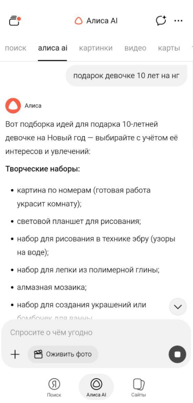 Благодаря обновлению пользователи смогут решать с Алисой более сложные задачи. В отдельном чате с Алисой AI можно: