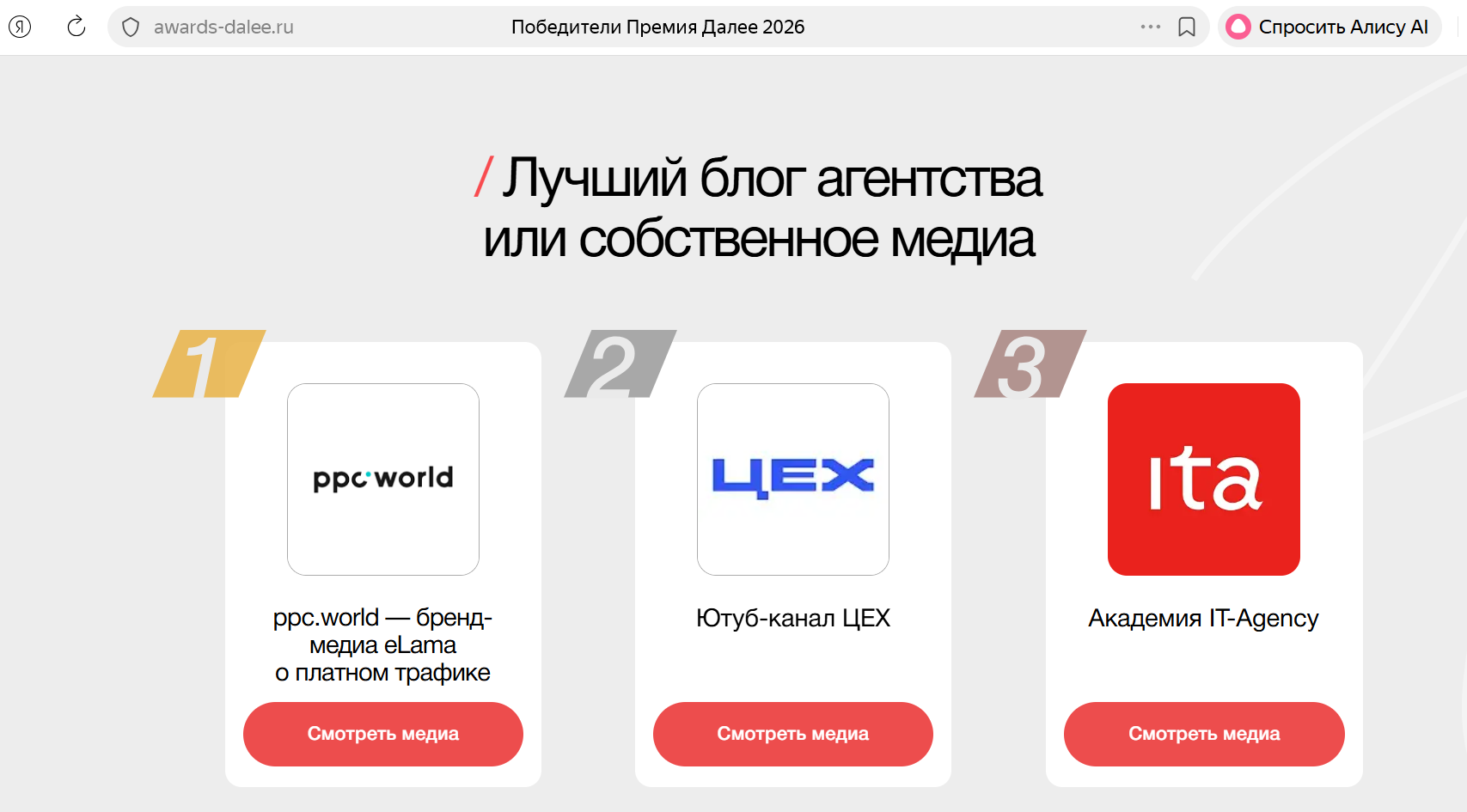 ppc.world — победитель в номинации «Лучший блог агентства или собственное медиа» |