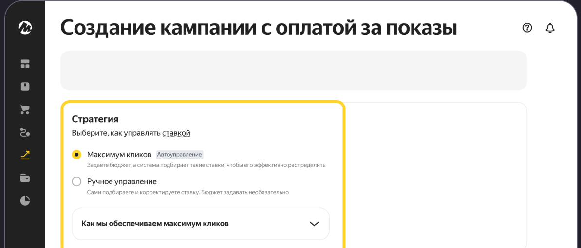 Стратегия «Максимум кликов» в Бусте показов Яндекс Маркета |