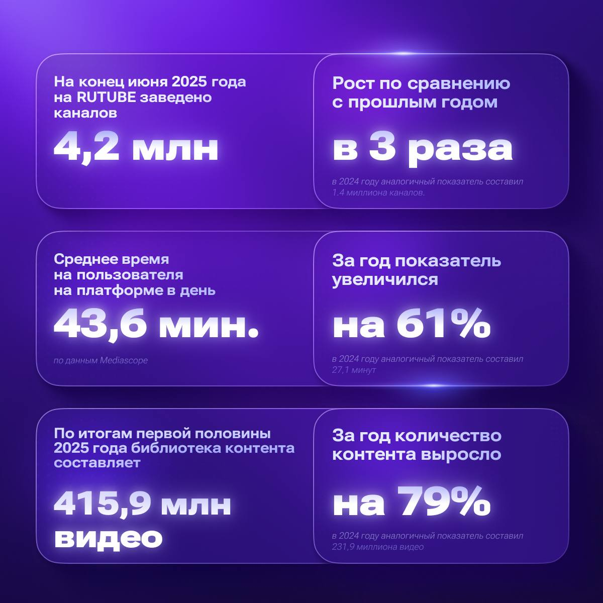 Динамика показателей Rutube за январь—июнь 2024 и 2025 года |