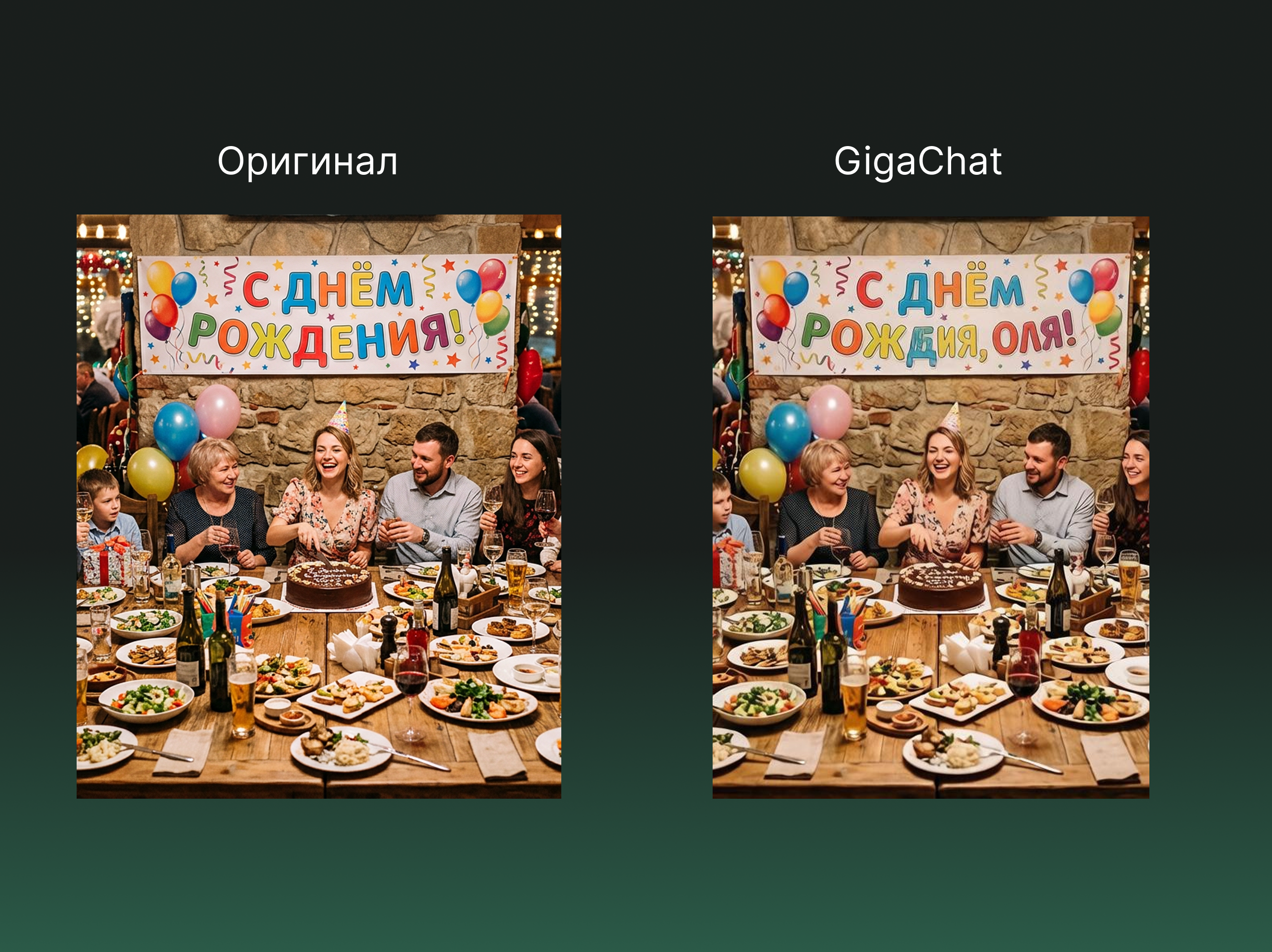 Также вырос уровень детализации в сложных сценах — интерьерах, сервировке стола, изображениях с большим числом людей. Текст на изображениях генерируется корректнее, ошибок и галлюцинаций стало меньше.