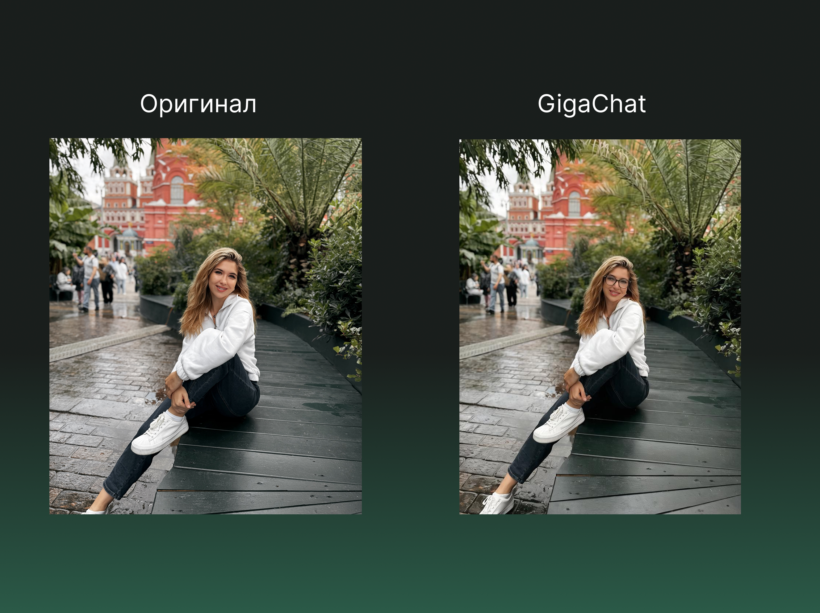 По словам разработчиков Сбера, нейросеть также стала точнее понимать сложные многосоставные инструкции: если попросить поменять прическу или добавить очки, всё остальное остается нетронутым.