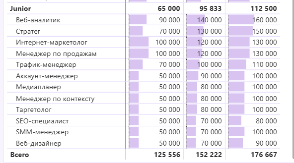250 000 рублей — у интернет-маркетологов и трафик-менеджеров;
