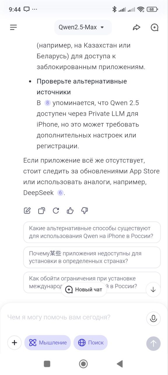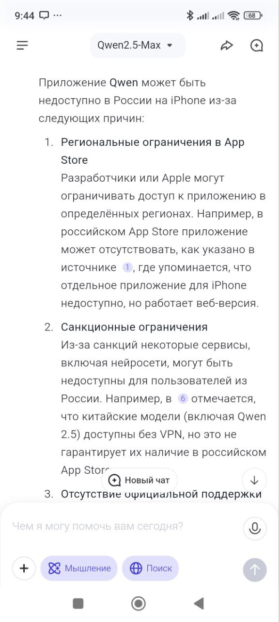В приложении доступны несколько моделей Qwen, но базово — Qwen 2.5 Max. Основной функционал не отличается от веб-версии, как и исполнение. Результаты текстовой генерации оказались практически идентичными.