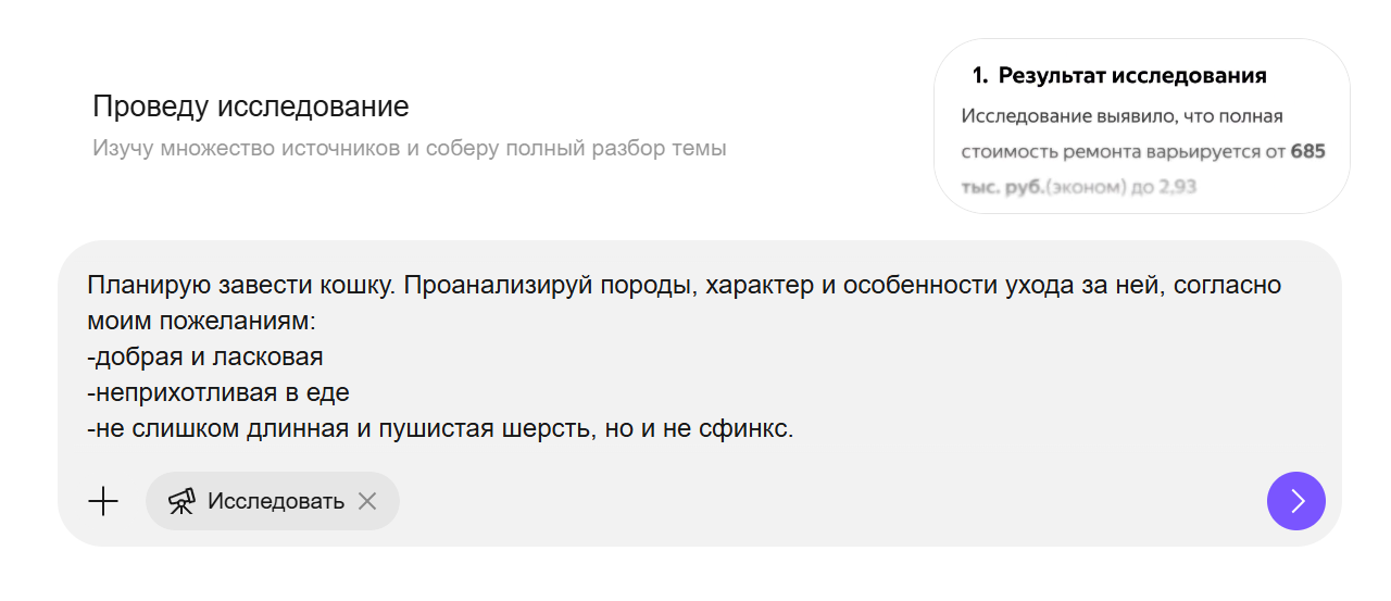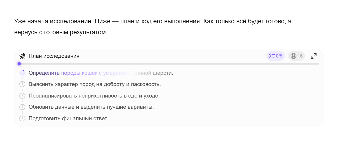 ИИ-агент «Исследовать» в чате с Алисой AI |