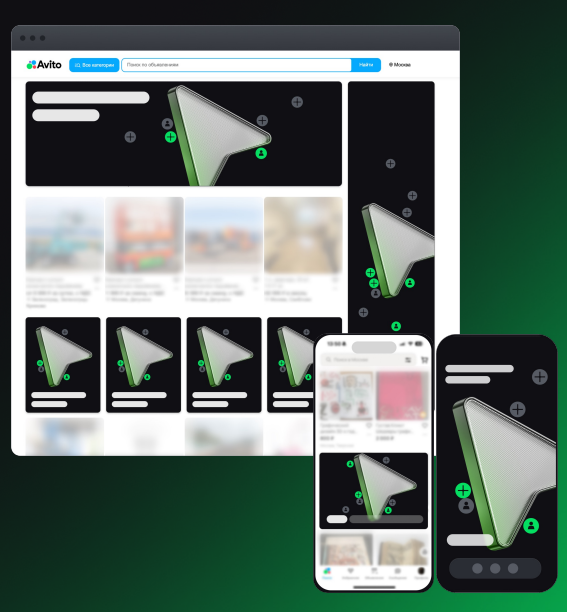 медийный премиум — крупный баннер на главной странице Авито, в рекомендациях, видеоленте и результатах поиска;