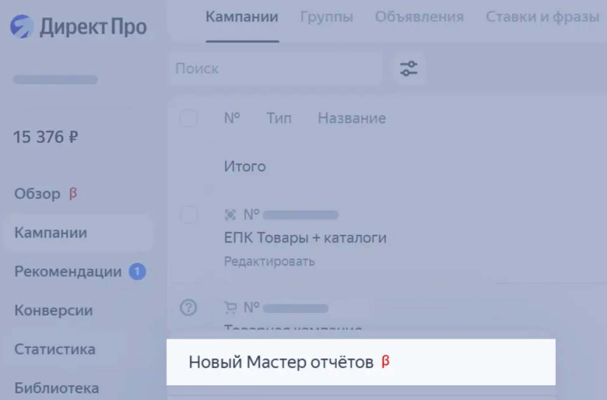 В интерфейсе кабинета Директ Про заработала новая версия Мастера отчетов — в режиме открытого бета-теста. Найти обновленный Мастер отчетов можно в меню «Статистики», сообщается в блоге Яндекс Рекламы.
