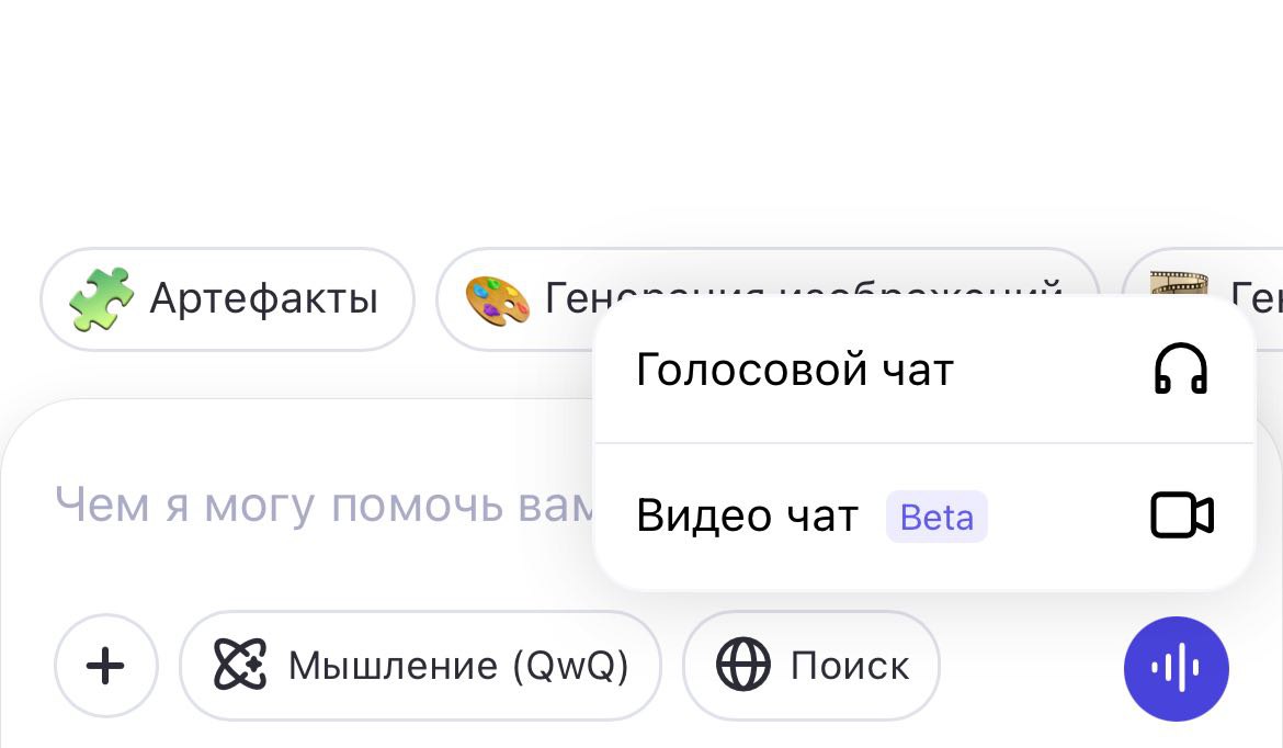 Голосовой и видеочат в Qwen |