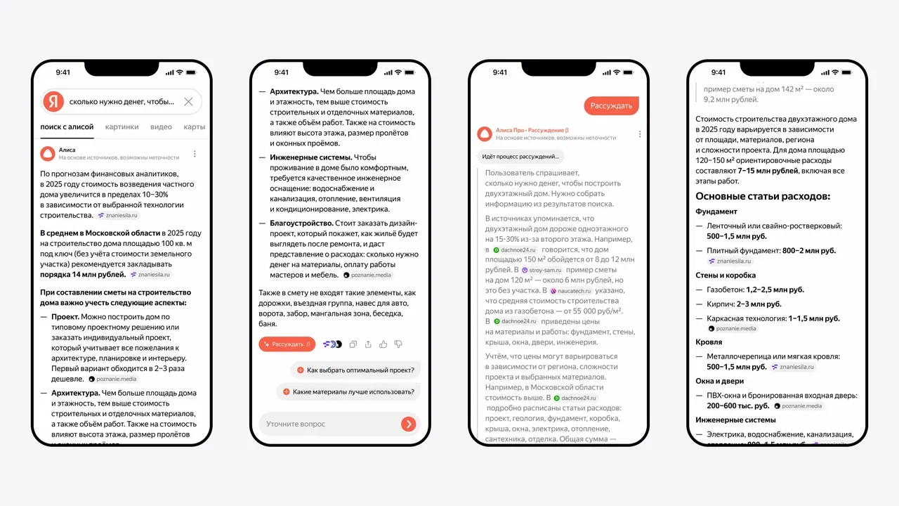 Яндекс Поиск масштабно обновился. Здесь появились Вертикали Поиска — разделы «Квартиры», «Финансы» и «Товары», где можно отдельно искать предложения. Также в Поиске появился режим рассуждений и возможность генерировать контент с помощью Алисы: в поисковой строке можно попросить нейросеть нарисовать изображение или разобраться в сложной теме — ответ будет развернутым, с картинками, видео и ссылками на источники, сообщила ppc.world пресс-служба Яндекса.