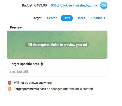 Между тем таргетолог Telegram Ads Маша Смирнова отметила, что таргетинг Target Bots появился в евро-кабинетах.