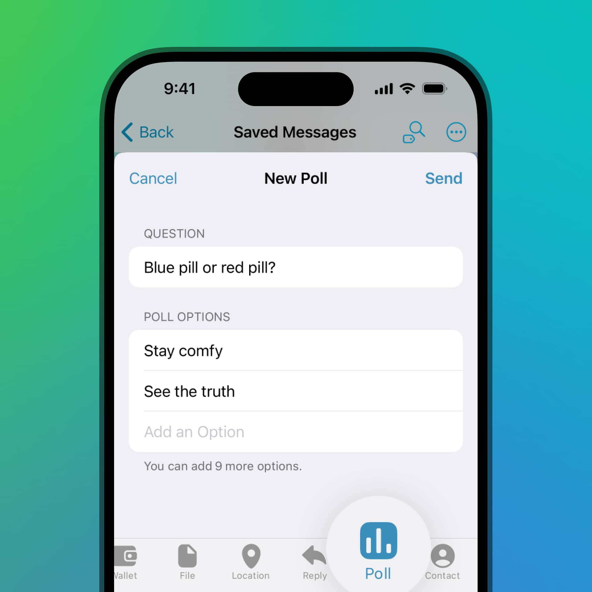 В опросы теперь можно добавлять до 12 вариантов ответа. К тому же пользователи смогут отправлять опросы в «Избранное», чтобы сохранить у себя результаты или позже поделиться ими в чатах.