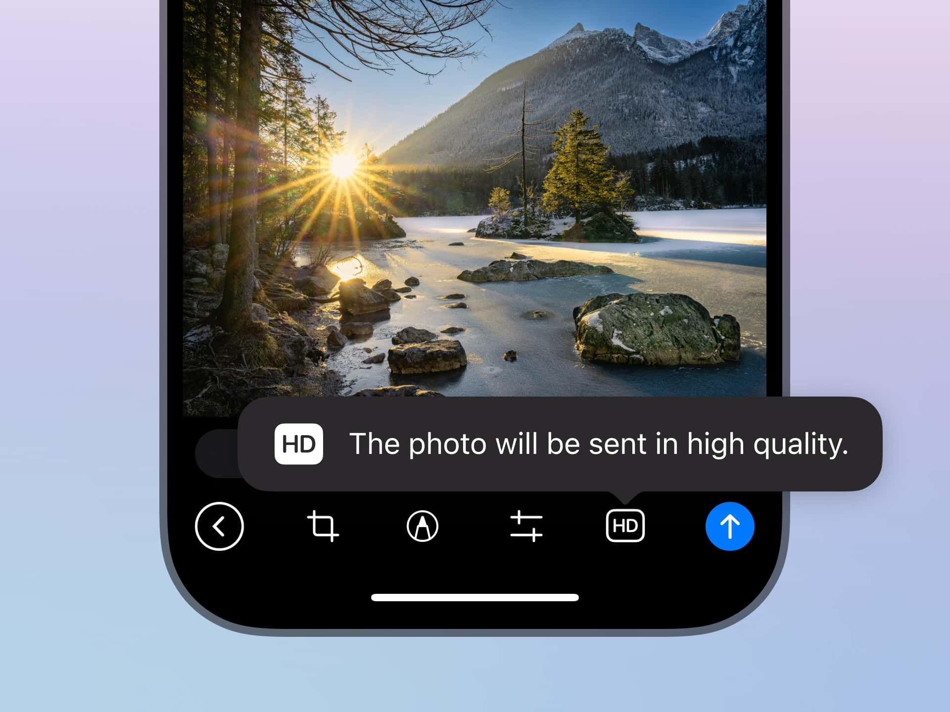 Чтобы отправить фото в HD-качестве, нужно: