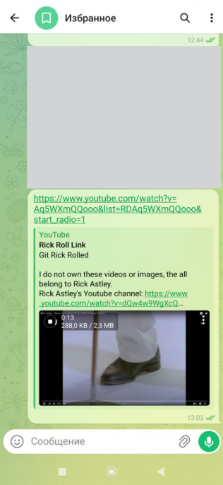 Воспроизведение YouTube-видео в интерфейсе Telegram |
