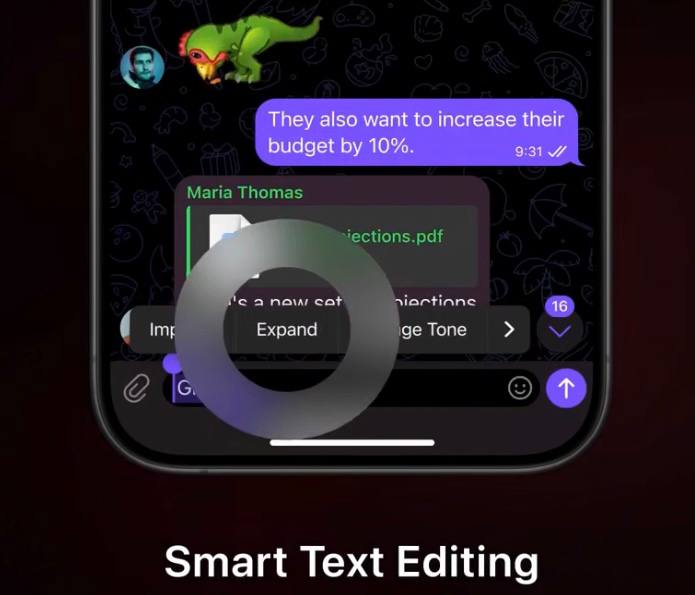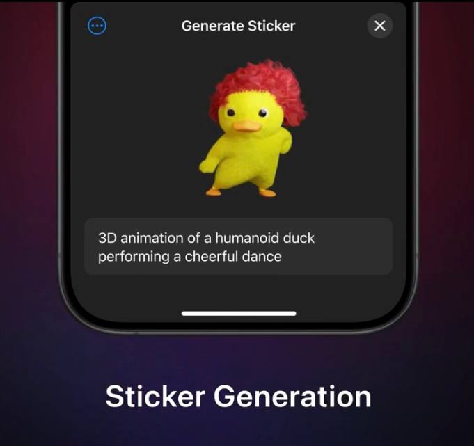 Генерация стикеров. В редакторе стикеров можно будет текстом описать желаемый стикер, в том числе анимированный, а нейросеть создаст его.