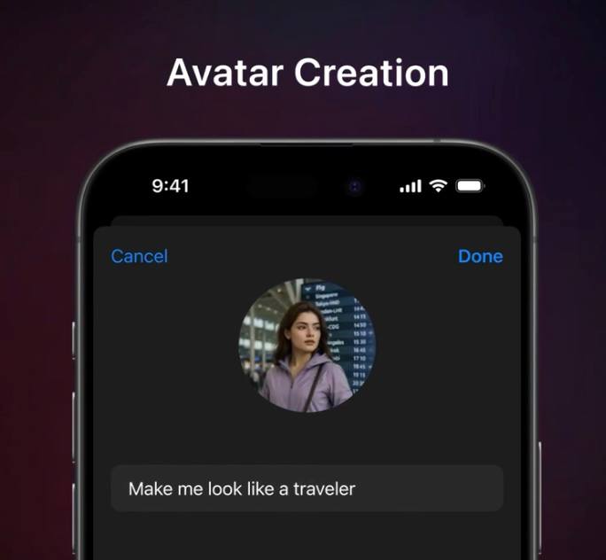 Генерация аватарок для профиля в Telegram. На видео показано, как Grok меняет фон на аватарке, а лицо пользователя сохраняется.