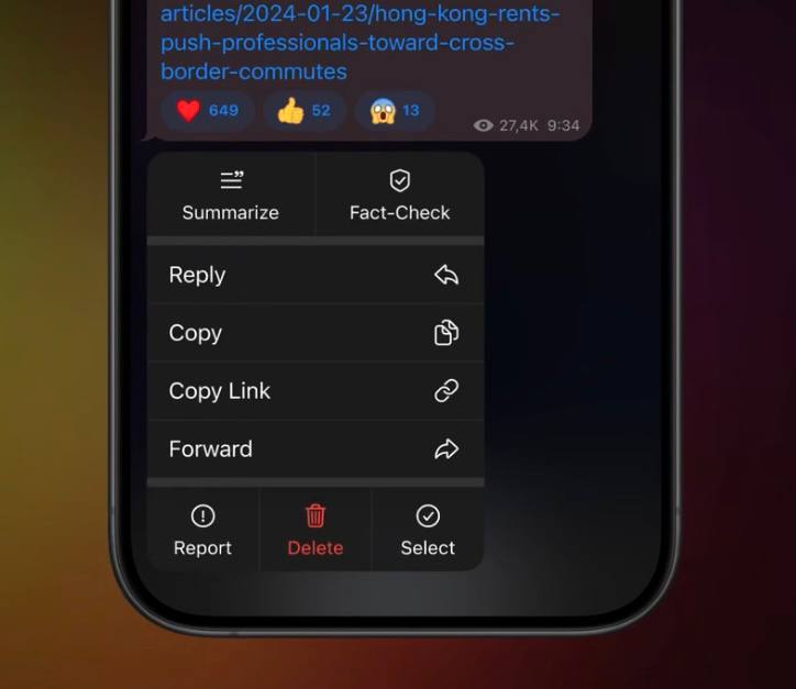 Фактчекинг в каналах. Кнопка «Фактчек» появится в контекстном меню сообщений в канале.