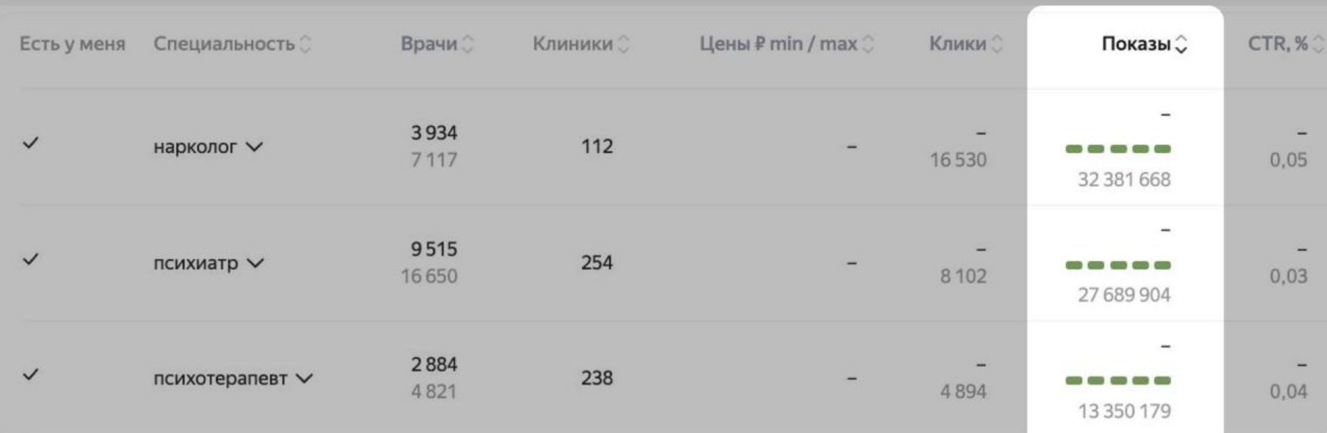 Сравнивать показы своего сайта в Поиске с показами конкурентов |