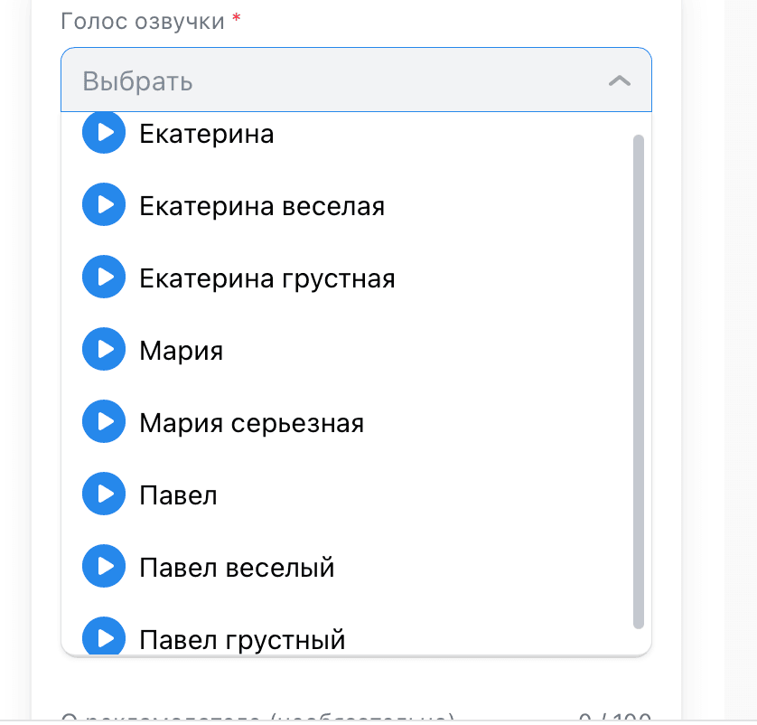 Добавьте аудиоролик длительностью 5–30 секунд и размером до 2 Мб. Можно загрузить свой аудиофайл или создать новый с помощью голосового помощника Маруся. Во втором случае: