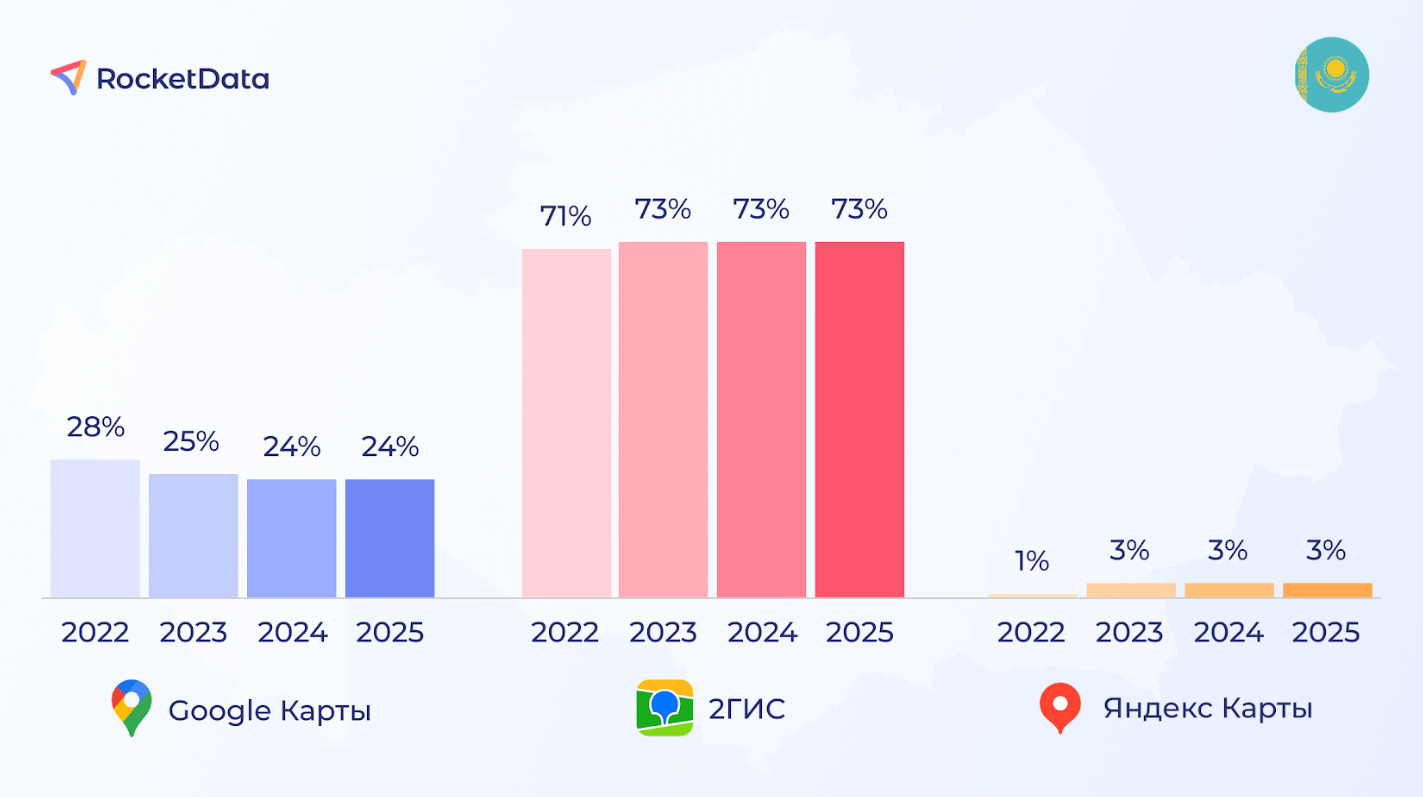 В Казахстане среди геосервисов лидерует 2ГИС: