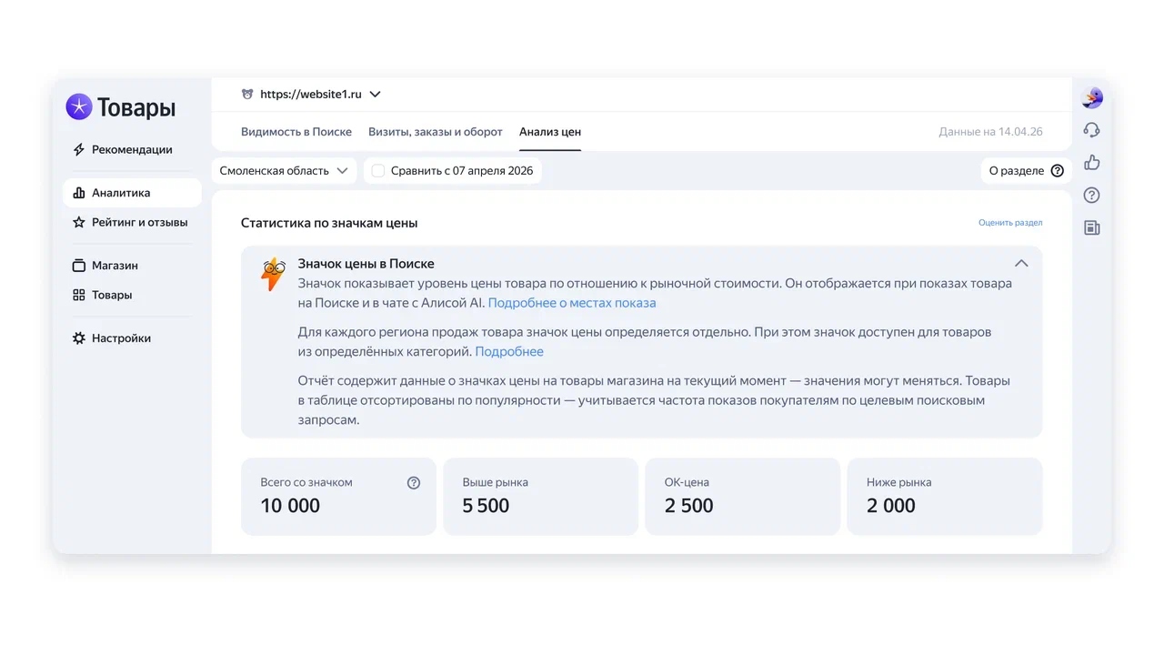Доступ для интернет-магазинов к ценовой аналитике в Яндекс Товарах |