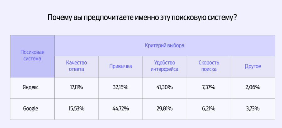 Опрос показал, что основной фактор выбора поисковой системы — удобство интерфейса.
