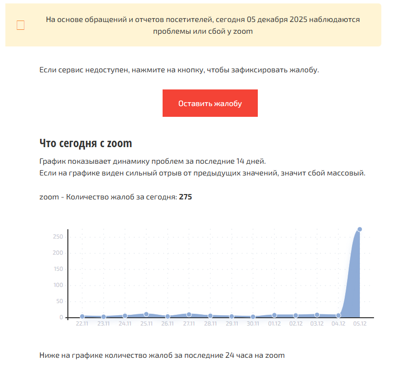Сообщения о сбое в работе ряда сервисов появились в сети днем 5 декабря 2025 года. У пользователей не работают: